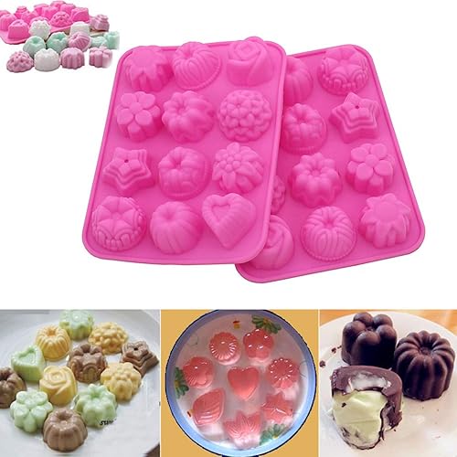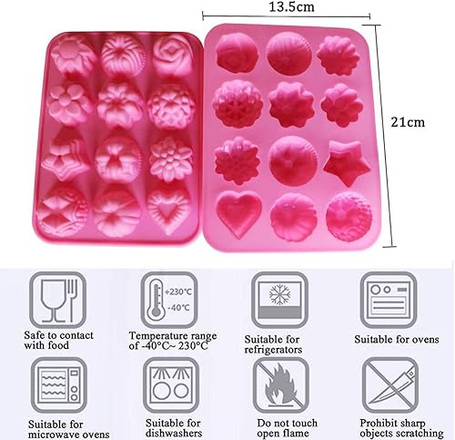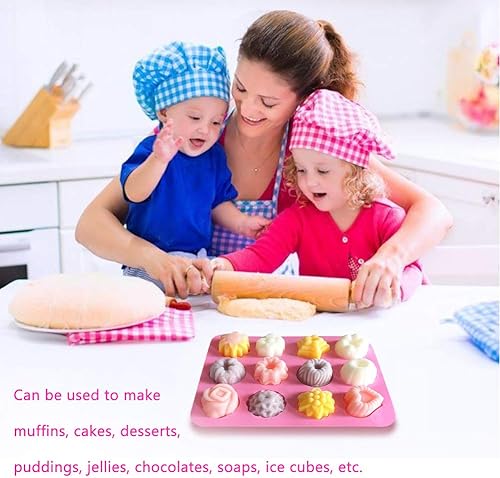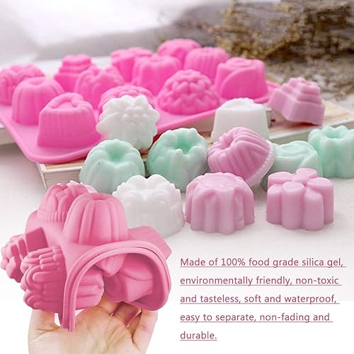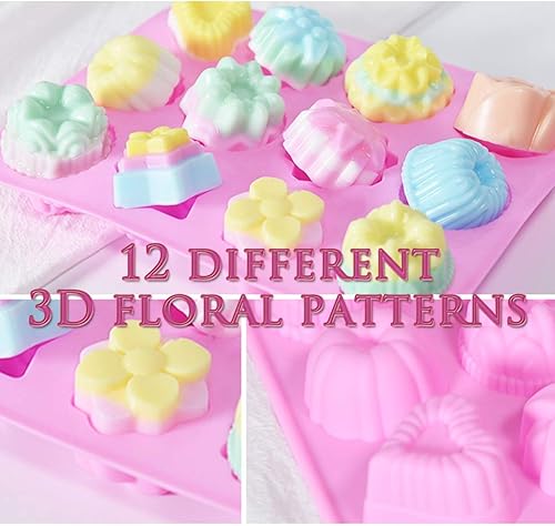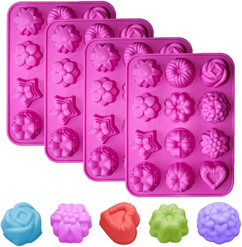 SIMUER 4 Moules à Gâteaux Silicone Fleur Cœur Rose, 12 Motifs Différents, Multi-Usage, Réutilisable, Passe au Four, Micro-ondes, Lave-vaisselle