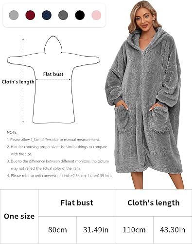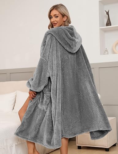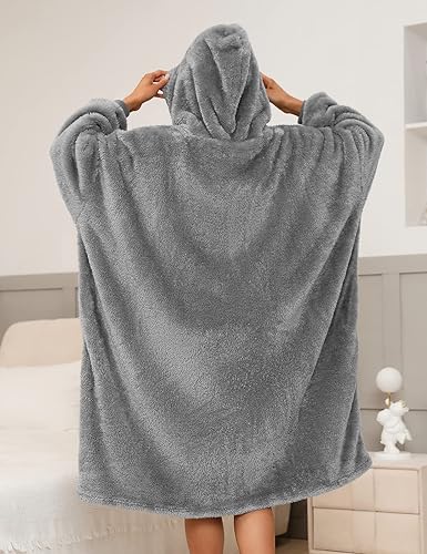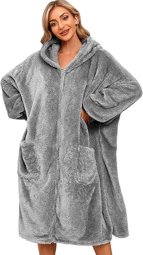 RITOSTA Pull Femme Plaid Homme Sweat à Capuche Zippé Couverture à Capuche surdimensionnée Poncho Polaire Sherpa Ultra Doux Sweat a Capuche Grande Poche Hiver Chaud (Gris foncé, Taille Unique)