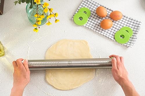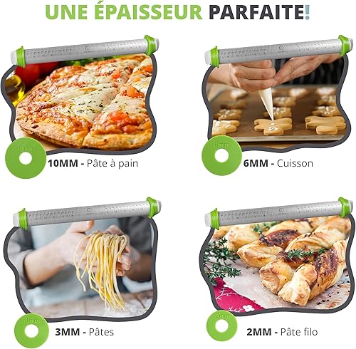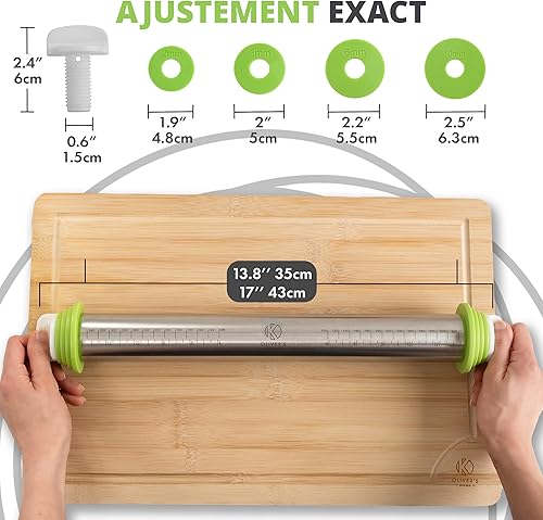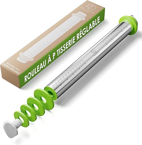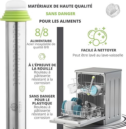 Oliver's Kitchen's ® Rouleau à Pâtisserie - L'Ustensile de Cuisine par Excellence Équipé de Quatre Anneaux Réglables pour une Épaisseur Parfaite - Antiadhésif et Nettoyage Rapide