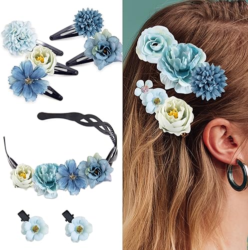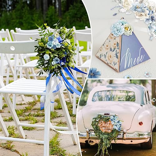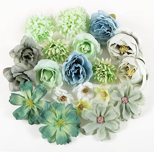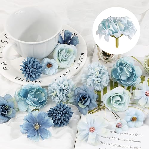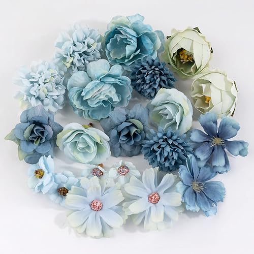 20pcs Mini Fleurs Artificielles Marguerites Blanches Faux Tête de Fleurs DIY Couronne Bouquet Mariage Fleur Decoration de Mariage Maison (Bleu)