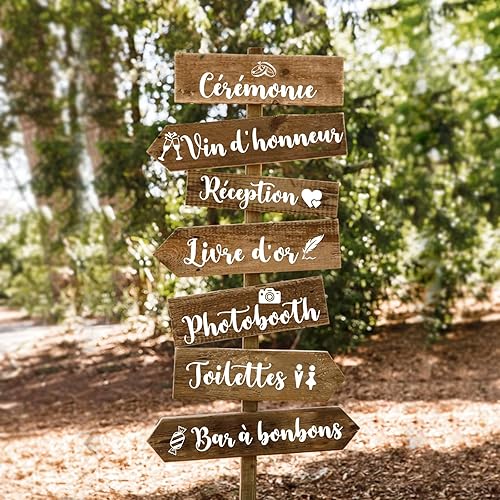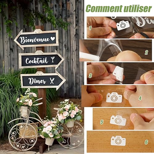 4 Feuilles Stickers Panneau Directionnel Mariage Autocollants Bienvenue Cérémonie Toilettes Photobooth Livre D’or de Panneau Direction de Flèche Décoration DIY pour Accueillez les Invités Fête Mariage