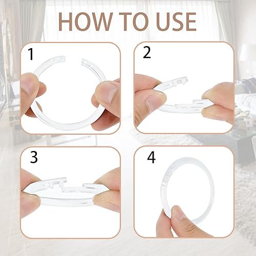 100 Pièces Rideaux Suspendus Anneaux 40mm Anneaux de Rideaux et Crochets en Plastique pour Salle de Bain, Fenêtre