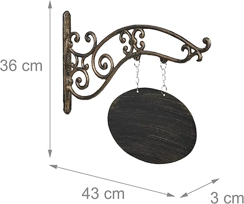 Relaxdays Enseigne Murale en Fonte de Fer, Design nostalgique, à Personnaliser, Crochet, entrée, Bar, Noir et doré
