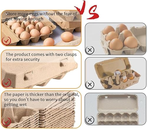 Iyalezirk Lot de 20 cartons pour oeufs, cartons pour oeufs carrés en pâte de papier, boîtes à carton pour oeufs, plateau à oeufs vides, support d'oeufs en pulpe