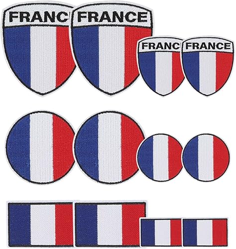 MWOOT Écusson Français, Patchs Drapeau Français, Lot de 12 Patch France, Pièces pour Applications Brodées pour sac à dos Vêtements Chapeaux Vestes Jeans Décoration