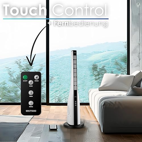 Echos® Ventilateur colonne à économie d'énergie - Très silencieux - Avec télécommande - 3 modes - Ventilateur avec refroidissement oscillant - Minuterie 15 h - Écran LED