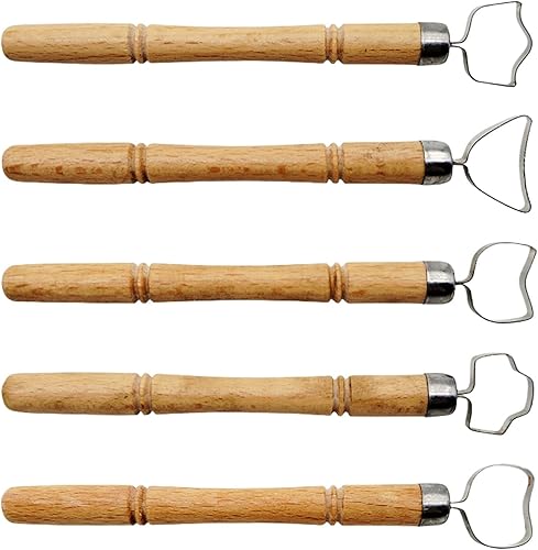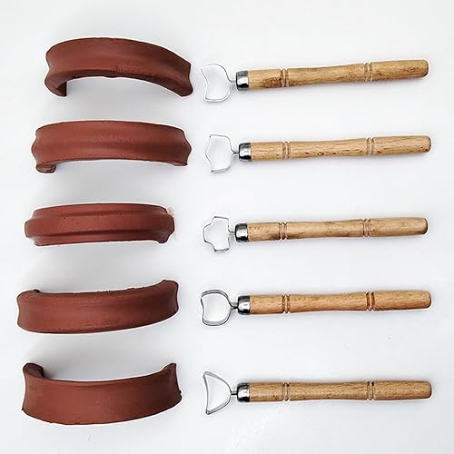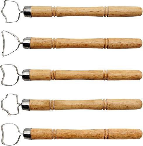 Lot de 5 outils de façonnage en céramique en acier inoxydable avec poignée en bois, outil de sculpture d'argile, outil de poterie
