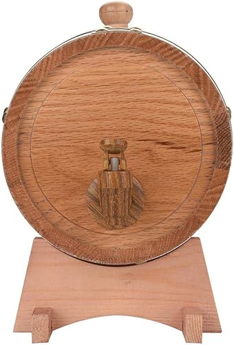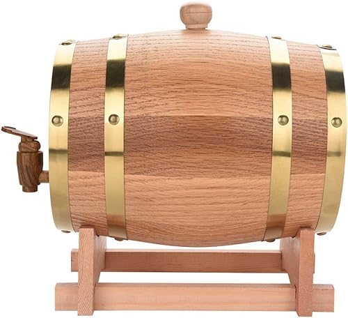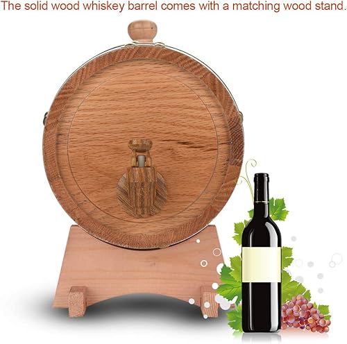 Ejoyous Baril de vin en chêne 3L, Distributeur de Baril de vin en Bois de chêne Vintage avec Support en Bois pour Whisky Bourbon Tequila
