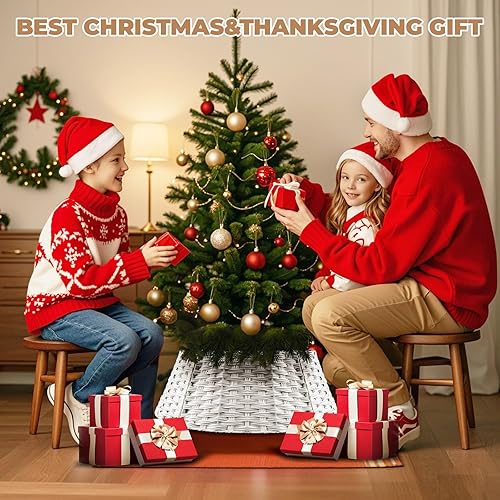 Bomclap Jupe de sapin de Noël en rotin artificiel - Pour décoration d'arbre de Noël - Panier rond - 70 x 50 x 26 cm - Couleur naturelle