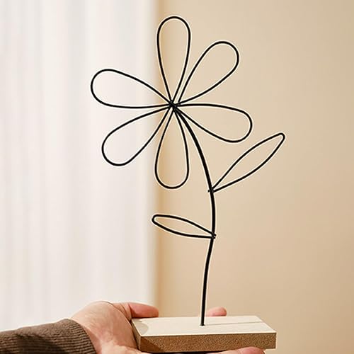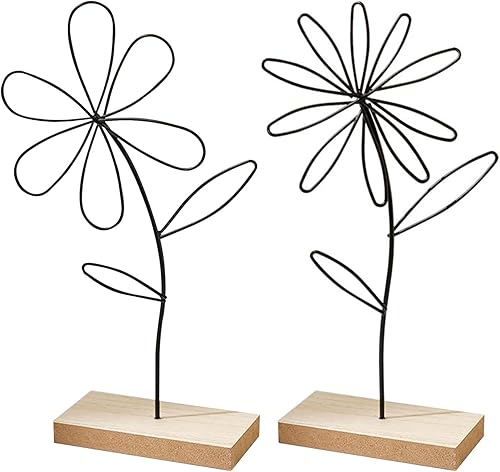 HDGSAFD Lot de 2 décorations florales en fer forgé - Décoration florale avec fond en bois - Fleur simple en fer forgé - Convient pour chambre à coucher, salon