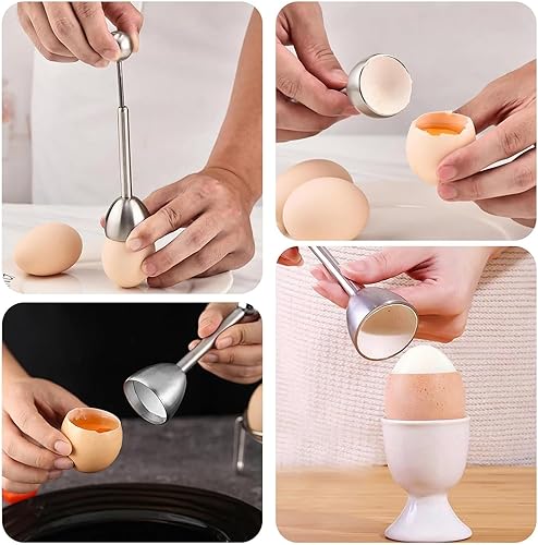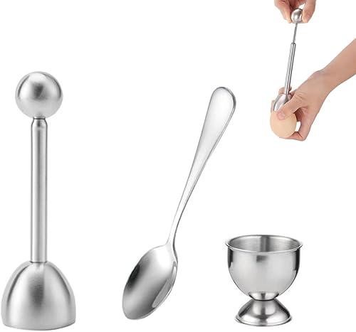 Lonwiner 3pcs Coupe-œuf Outil D'Oeuf en Acier Inoxydable,Ouvre de Coquille D'oeuf,Coupe-Coquille pour Oeufs durs et Mous,1*coquetier+1*cuillère à œuf