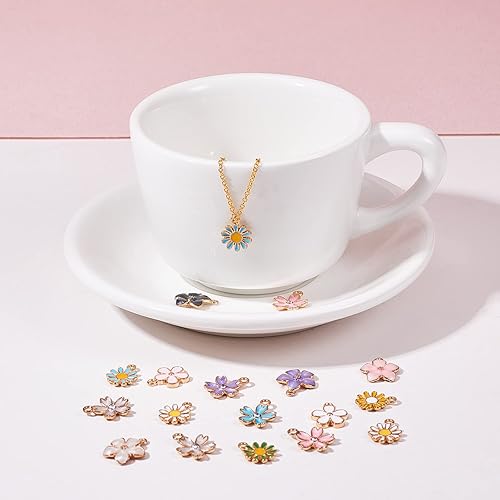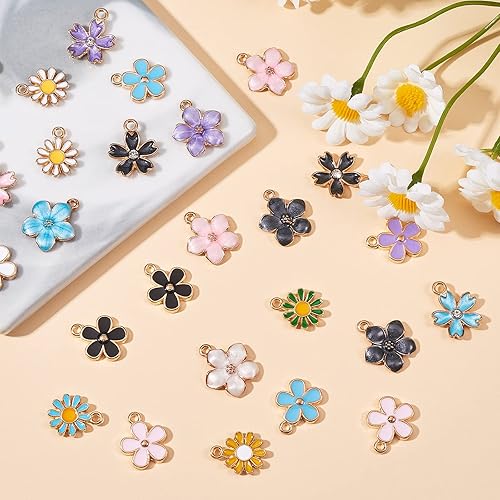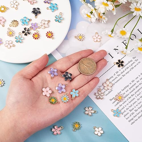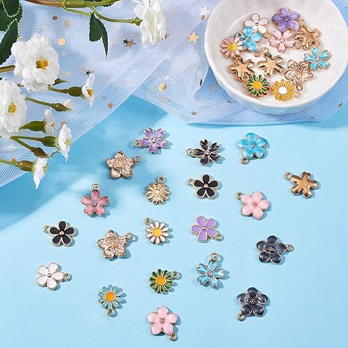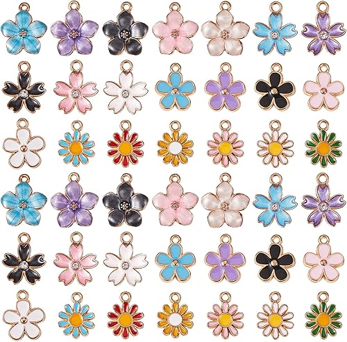 BEEFLYING Lot de 42 pendentifs assortis en forme de fleur en émail plaqué or pour la fabrication de bijoux et les loisirs créatifs