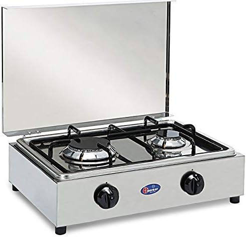 Réchaud de table en acier PARKER 2 feux avec plateau amovible pour le nettoyage alimentation gaz GPL (boutons) avec soupapes de sécurité pour usage intérieur