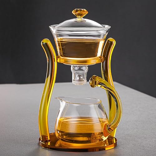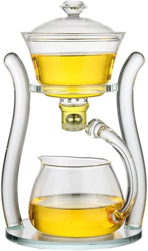 Mozeo Lazy Kungfu Théière semi-automatique en verre avec ventouse pour infusion d'eau automatique – Service à thé à fleurs de bureau (théière transparente + 6 tasses)