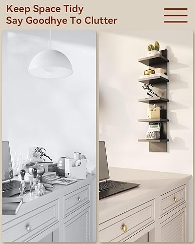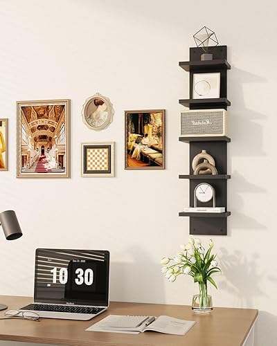 IBUYKE Étagère verticale à 5 niveaux, étagère murale flottante, étagère murale décorative verticale pour la maison, la chambre, le bureau WBC009H
