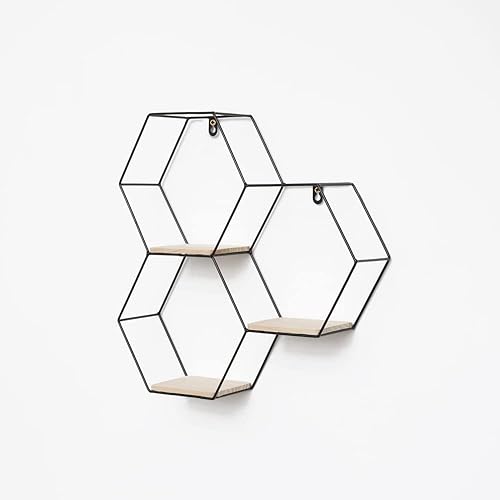 IVOL Étagère murale alvéolée en métal, à 4 tablettes en bois, 40,5 x 58 cm, noire