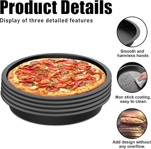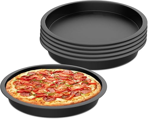 LEKEFETO Lot de 6 plaques de cuisson à pizza : plaque à pizza Ø 20 cm, moule à pizza rond en acier inoxydable avec revêtement antiadhésif, pour pizza, tartes flambées, durables et faciles à nettoyer