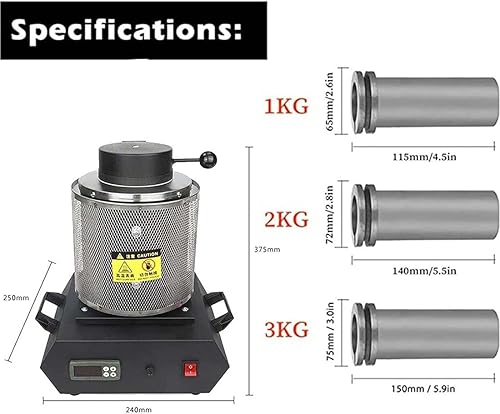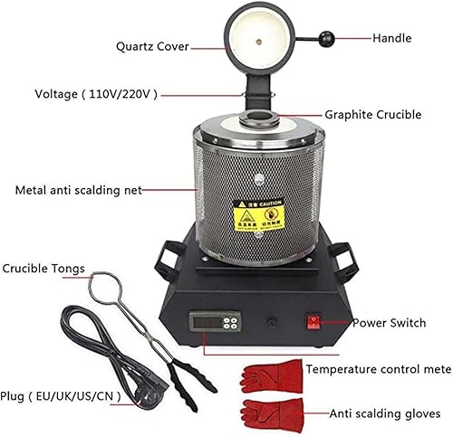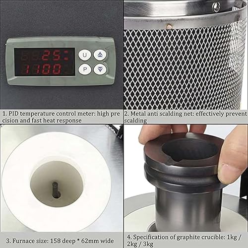 DPDZSW Four De Fusion d'or,Machine De Fusion De Métal Numérique 2102 ℉, Kit De Moulage Métal avec Creuset en Graphite pour Fondre l'argent, l'or, Cuivre, Four De Coulée De Raffinage,Red-3KG