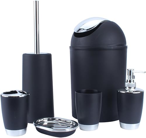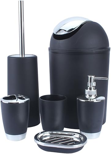 Set de salle de bains (6 accessoires) - 4 couleurs - Noir