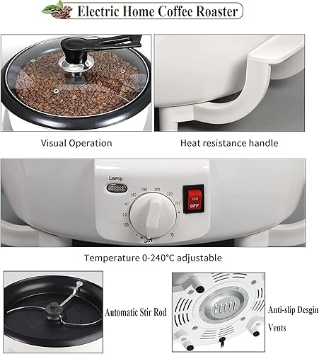 Torréfacteurs de café, Grille-pain électrique pour la maison, café en grain, cacahuète, noix de coco, châtaignes, grille-pain, température réglable, 750 g, capacité pour cafétéria, magasin/maison