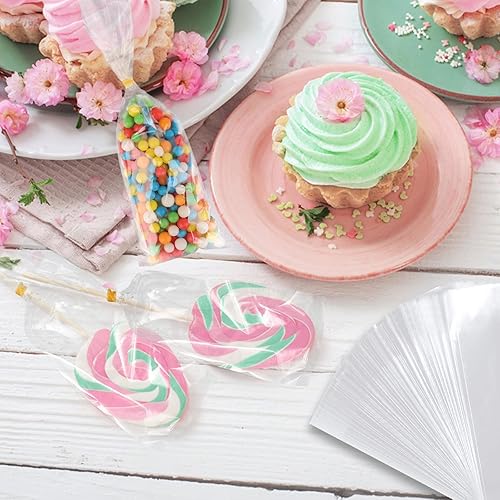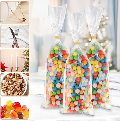 LOBVABA Lot de 10 sacs en cellophane avec ruban de satin rose pour bonbons, chocolats, bougies