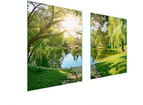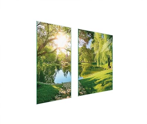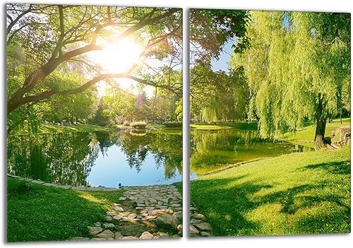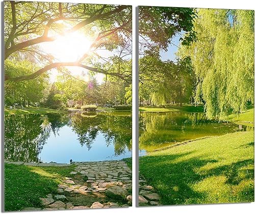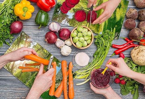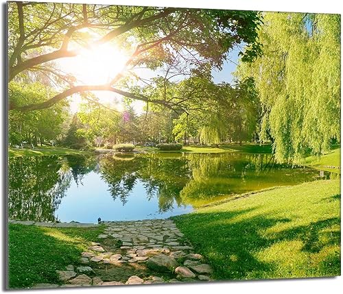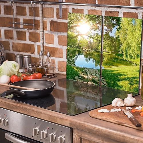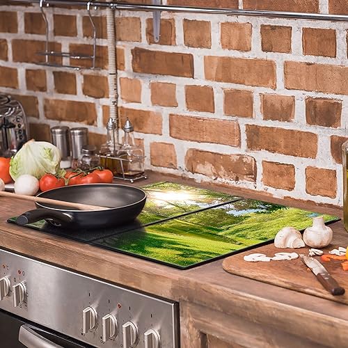 DarHaus Planche à découper en verre Ceranfeld 1 pièce 52 x 40 cm, plaque de découpe en verre, protection anti-éclaboussures, plaque en verre universelle, cuisine, Paysage Soleil