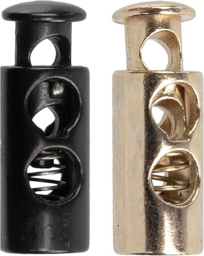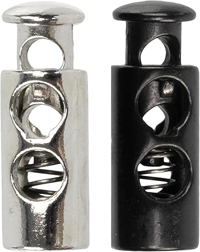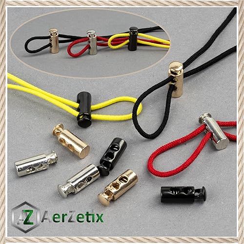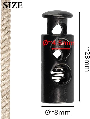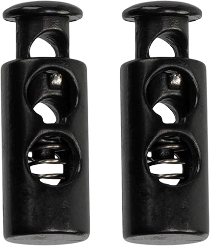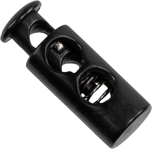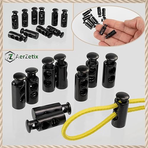 AERZETIX - Lot de 10 bloque-cordons cylindriques à 2 trous à ressort - stop serre arrêt cordon - ouverture 4.5 mm - en métal - couleur noir