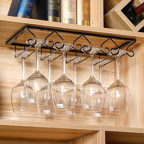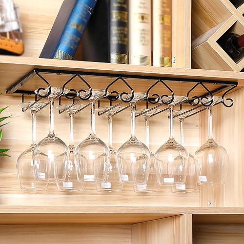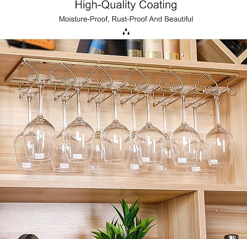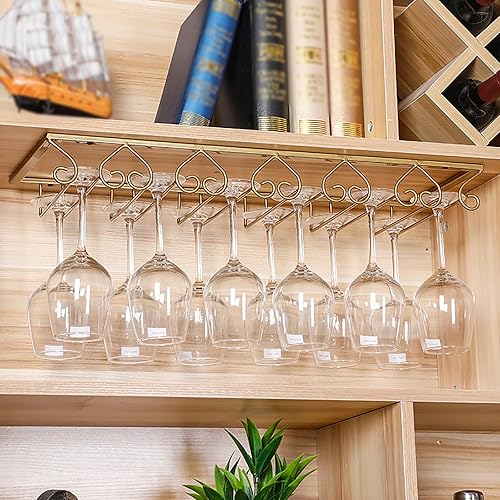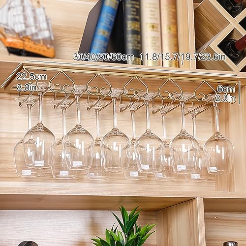 Porte-Verre à Vin Suspendu En Métal, support de verre à vin sous étagère, Cintre de rangement pour verres à pied, pour étagère d'armoires de restaurant de cuisine(Gold,60cmx22.5cm/23.6inx8.8in)