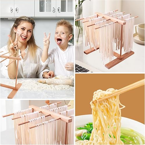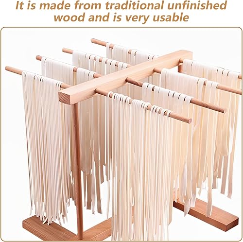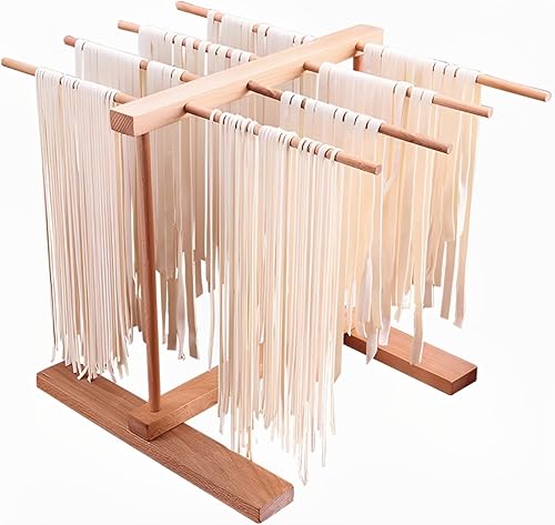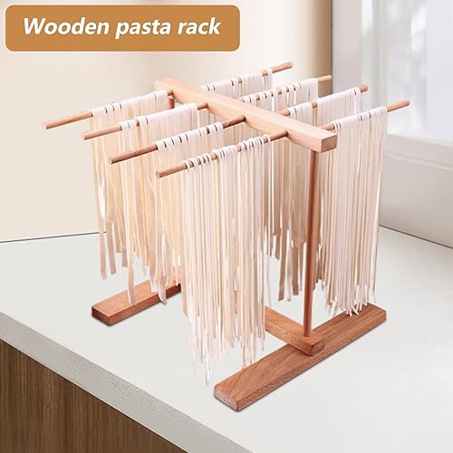 JMIATRY Sechoir a Pates Fraiches 39x22CM, Séchoir à Pâtes en Bois avec 8 Bras Amovibles, Séchoir à Pates Fraiches pour Pâtes