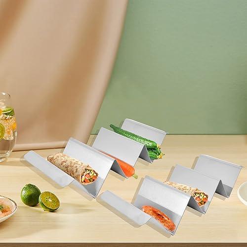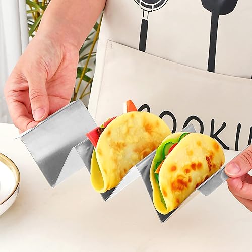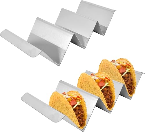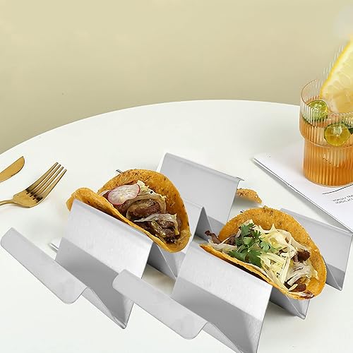 Disnace Support à Tacos en Acier Inoxydable, Lot de 2 Plateau Porte Tacos Supports à Hot-Dogs, Taco Holder en Forme de Vague avec poignée, Lave-Vaisselle, pour Tacos Mexicain, sandwichs, saucisses,V