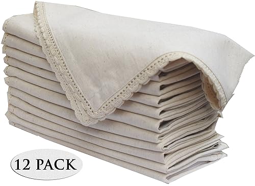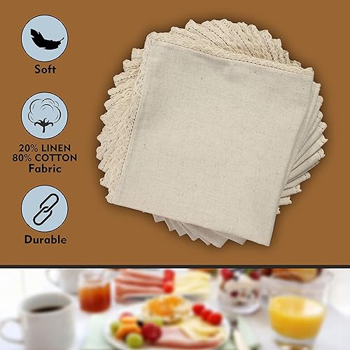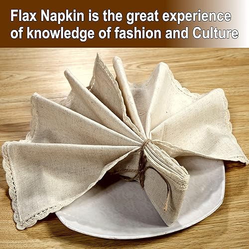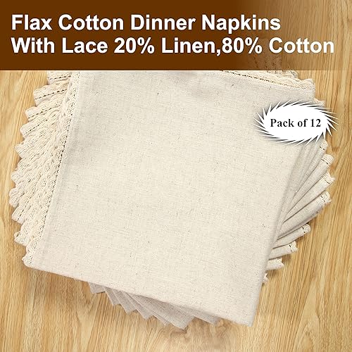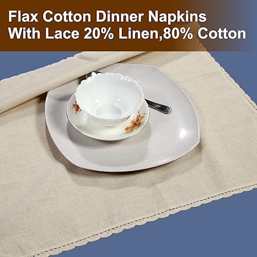 Serviette en lin et coton ajourées 51 x 51 cm, Tissu, Flax With Lace, 20x20 Inch