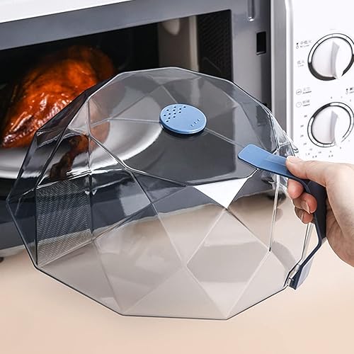 Verdant Touch Couvercle pour micro-ondes en plastique transparent avec aérations de vapeur, poignée anti-brûlure, anti-poussière pour plateau, poêle, bol 30 x 28 x 13 cm (bleu)