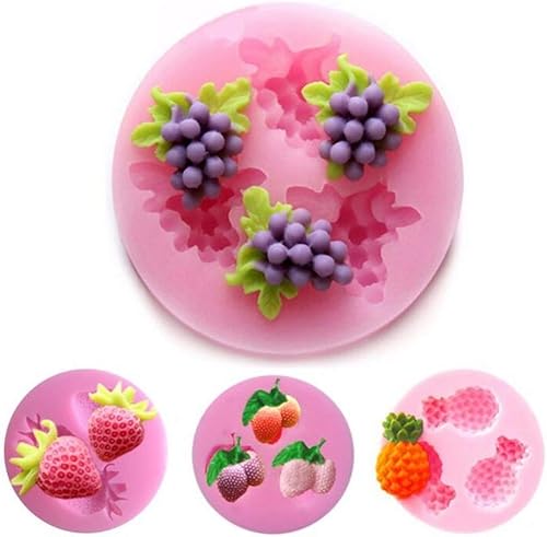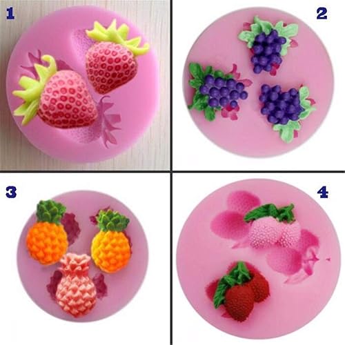 4 pièces Fruits Moules à gâteaux en silicone Savon Fondant, Moules, Raisin Cerise Ananas en forme de fraise Moule à dessert Pâtisserie Chocolat Sugercraft Jelly Moule à gâteau, glace Muffins
