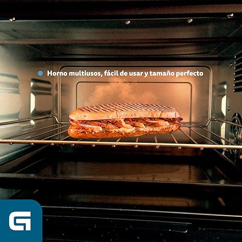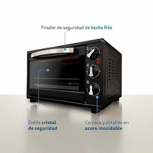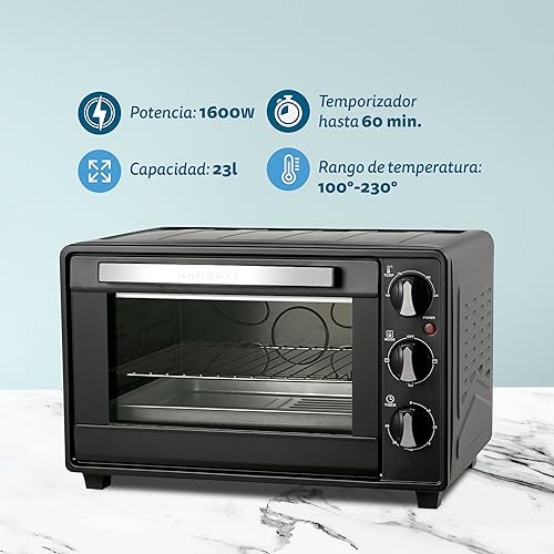 Grunkel - Four électrique multifonction de bureau de 38 l avec 3 fonctions de chaleur et sélecteur de température jusqu'à 230 ºC - HR-38N RM - Minuteur jusqu'à 60 min - 2000 W - Noir