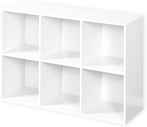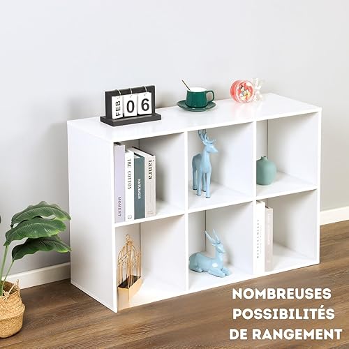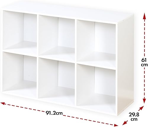 KARAT Étagère de Rangement du Salon, élégante à Six Compartiments - Bibliothèque de Chambre - en cubique Robuste - Modèle Vermont, Blanc, 29,8 P x 91,2 L x 61 H cm
