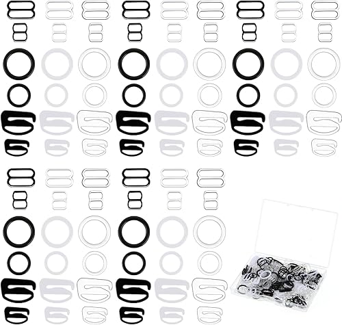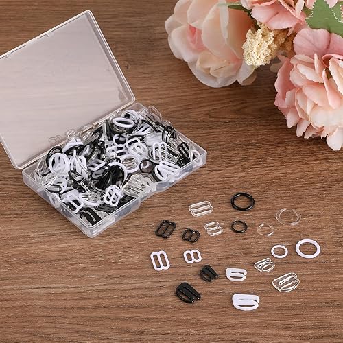 Lot de 252 anneaux de fermeture pour soutien-gorge - 12 mm et 8 mm - Anneaux réglables - Lingerie - Fermeture à crochet - Accessoire pour sous-vêtements, bikini, corps, robe (noir, blanc, transparent)