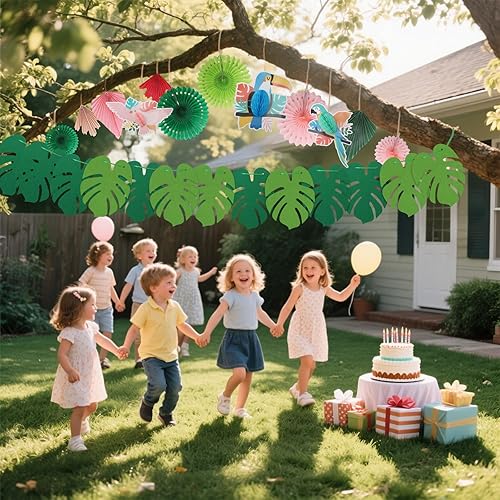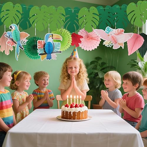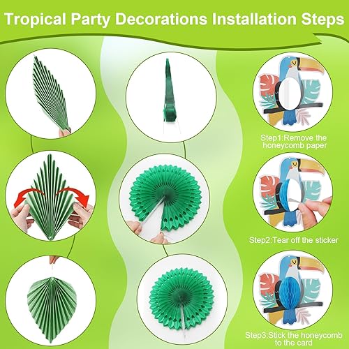 CoKeeSun 21 Pièces Deco Tropicale Hawaienne, Oiseaux Tropicaux Découpages en Nid d'abeille, avec des Éventails en Papier Suspendus Deco Garden Party Pool Party Deco Plage Decoration Anniversaire