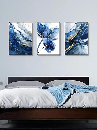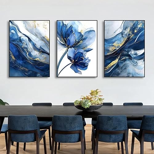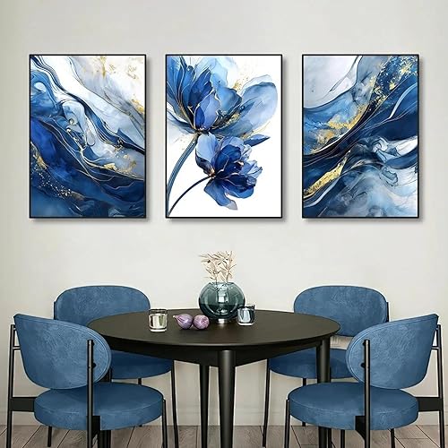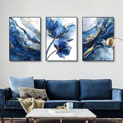 ZHAOLIN Lot de 3 affiches murales modernes en feuille d'or, motif abstrait de roses bleues, imprimables, pour décoration d'intérieur, 50 x 70 cm, 3 cadres internes