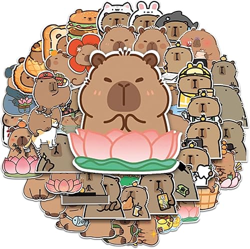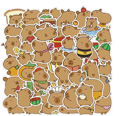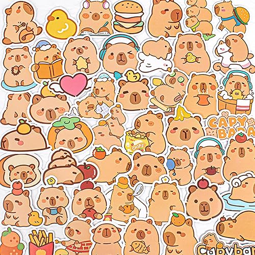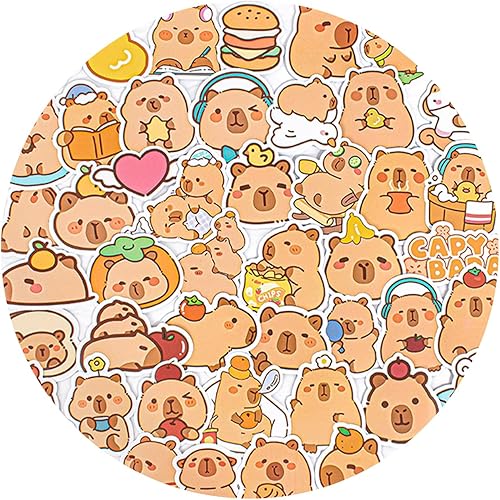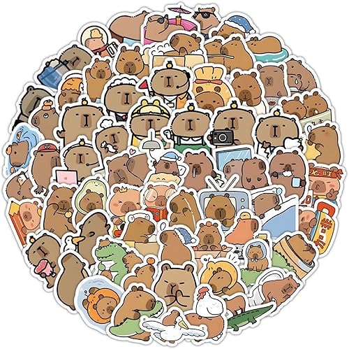 Calkkrer Lot de 100 Autocollants Capybara Imperméables - Décor Vinyle pour Ordinateur Portable, Bagages, Bouteille d'Eau, Casque - Autocollants de Voyage pour Enfants