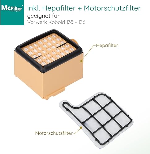 McFilter | Set d'accessoires 15 pièces adapté au Vorwerk Kobold VK 135, 136, 135SC, 12 sacs à poussière comme FP135 FP136 FP135 SC, 1 filtre HEPA, 1 filtre de protection moteur, type VO 8335