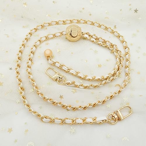 Spldsun Chaîne Sac, Chaîne Remplacement Cuir, Chaîne Sac Métal, Chaîne Sac Remplacement, Ajustable, Fermoir Pivotant, DIY pour Sac à Main, Sac à Bandoulière (Blanc)