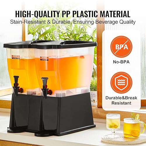 VEVOR Distributeur de Boissons Grande Capacité 2x11 L, Fontaine à Eau avec Robinet Couvercle et Support, en Plastique, Distribution de Jus Limonade Thé Glacé, pour Restaurants, Hôtels, Cafés, Soirées