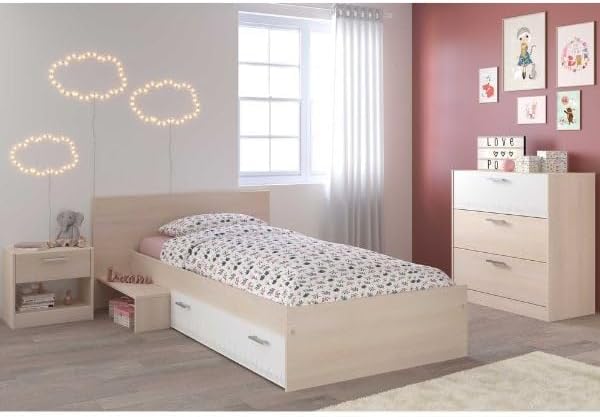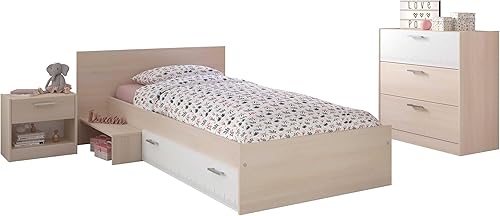 CHARLEMAGNE Chambre Enfant Complete style contemporain décor acacia clair et blanc - l 90 x L 190 cm