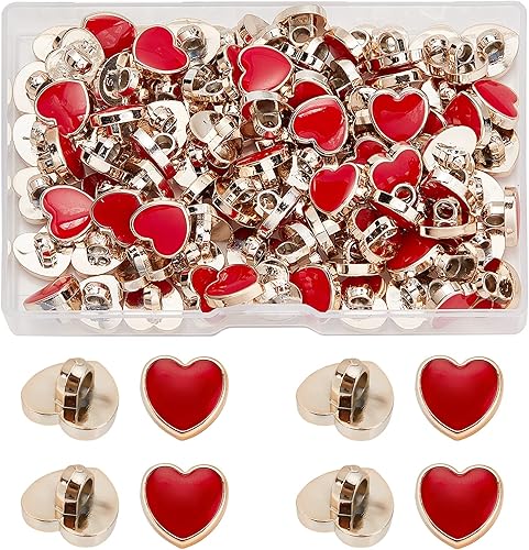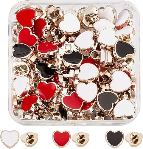 GORGECRAFT 3 couleurs 60 pièces Boutons à Tige en Métal Boucle en Forme de Coeur 12Mm Bouton en Plastique Accessoires avec Émail pour Chaussures Breloques Femmes Robe Costumes, Couleur Mixte