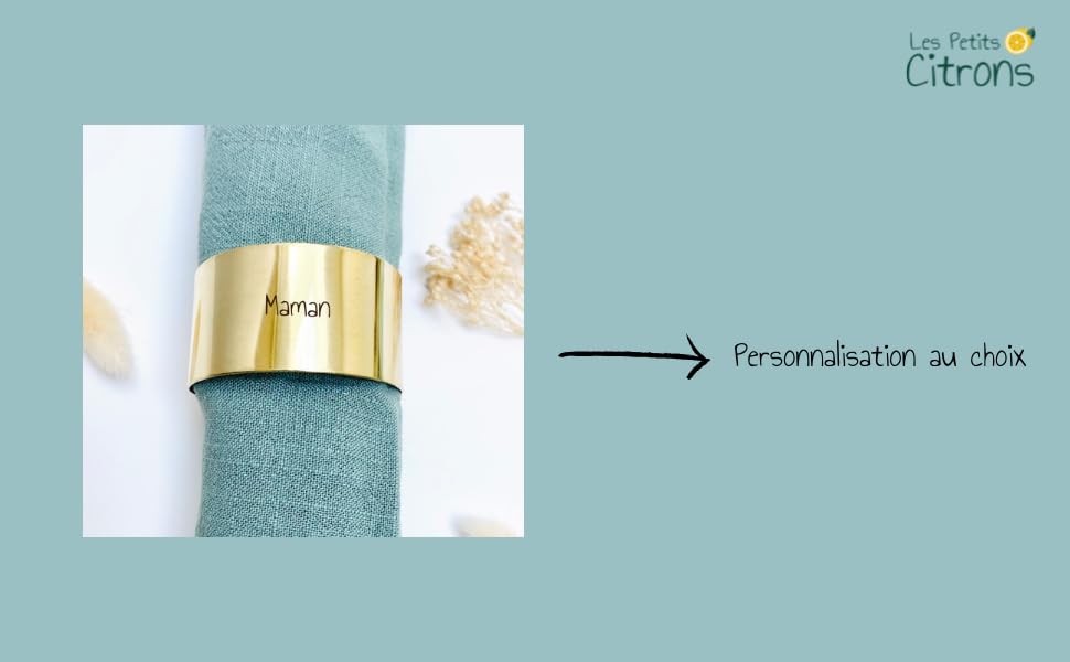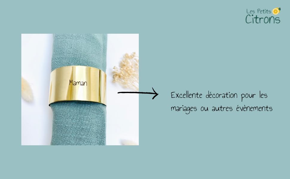Rond de serviette en laiton personnalisé | Décoration de table | Art de la table | mariage anniversaire | Cadeau personnalisé