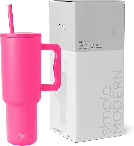 Simple Modern Gobelet Thermique avec Poignée et Paille | Bouteille d'Eau Isolée en Acier Inoxydable | Vaso de viaje para café helado | Trek Collection | 1180ml | Lavender Mist