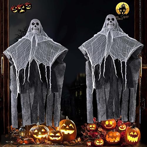 VIDSTW 2 Pièces Halloween Decoration, Tete de Mort Deco Halloween, Décoration Halloween de Fantôme, Créez Une Atmosphère d'horreur pour Decoration Halloween pour Salon, Jardin (60cm x 85cm)
