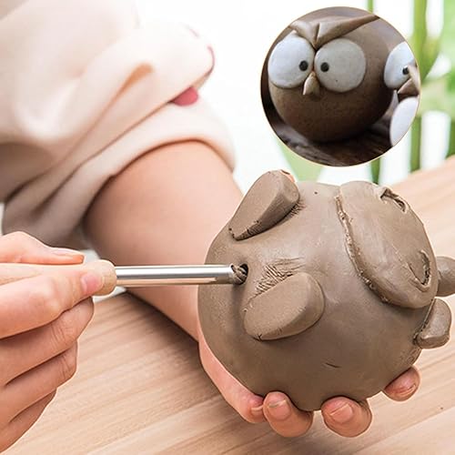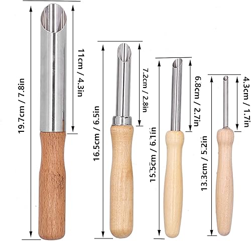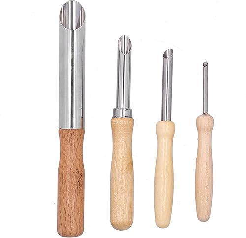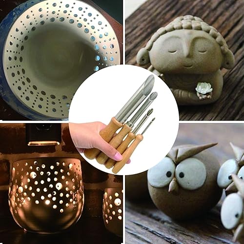 4Pcs Coupe-trous pour l'argile,Outil en acier inoxydable pour sculpter les trous de poterie avec manche en bois Perforateur de trous d'argile pour sculpteurs Potiers Poinçonner Gratter Marquer