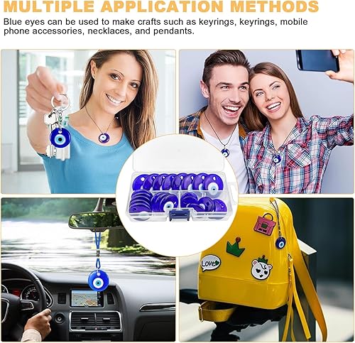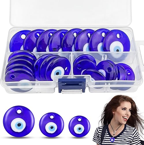 GZqiancang 24 Pièces Oeil Turc, Mauvais Oeil avec 1 boîte transparente pour colliers, bracelets, boucles d'oreilles, pendentifs, porte-clés (3 tailles)