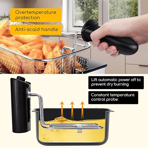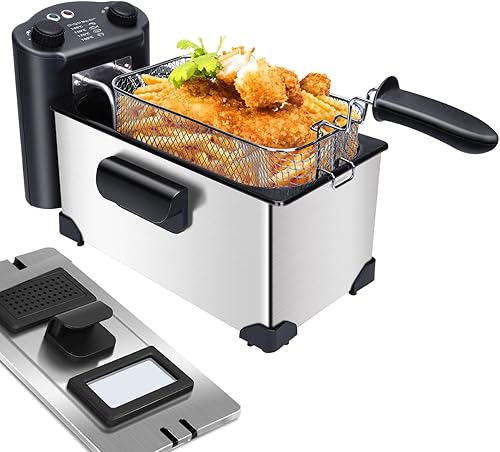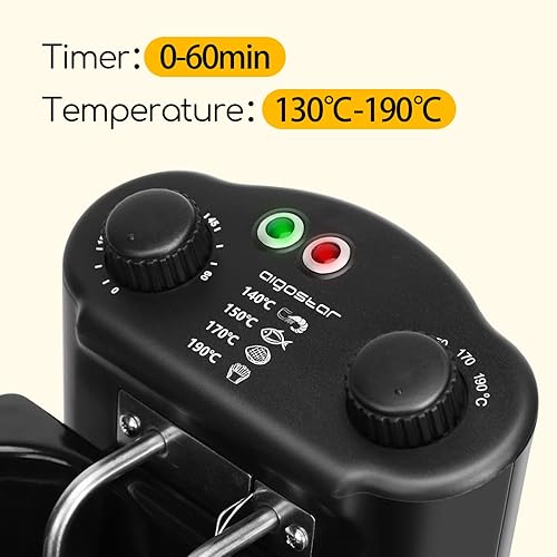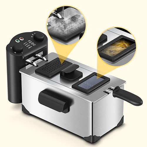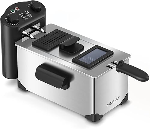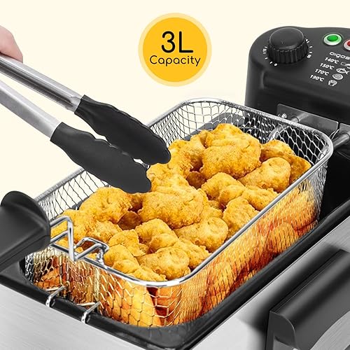 Aigostar Ken 30LEI - 2000W Friteuse en acier inoxydable de 3 litres avec minuterie et thermostat, couvercle anti-éclaboussures et fenêtre de visualisation